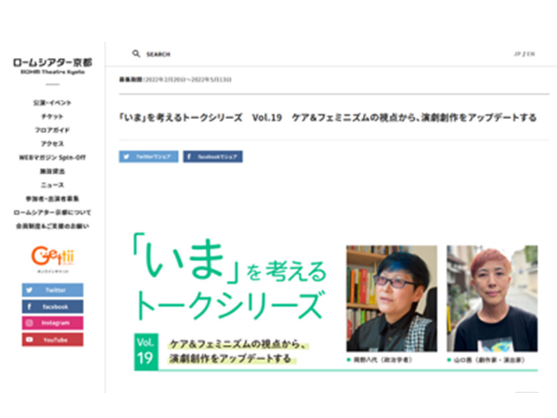 ロームシアター京都及び京都市主催の『「いま」を考えるトークシリーズ』のゲストにお招きいただきました -